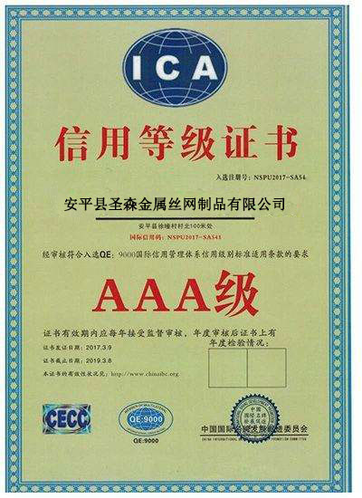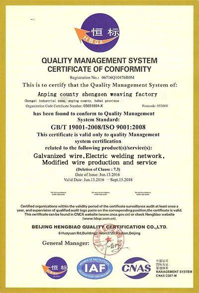 • 質量認證證書
